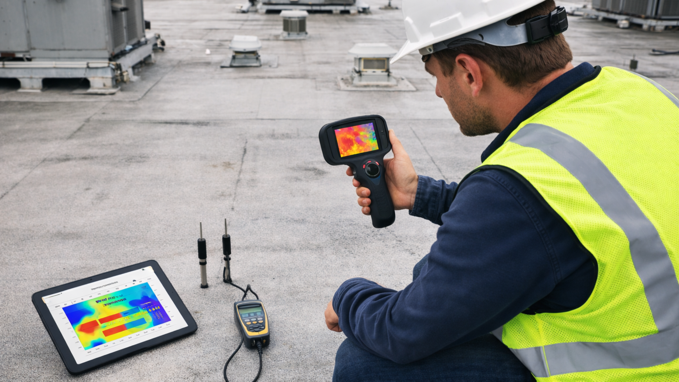 Our moisture surveys use advanced detection methods to identify hidden water intrusion within roofing systems. Early identification allows targeted remediation, protecting structural integrity and preventing costly damage.